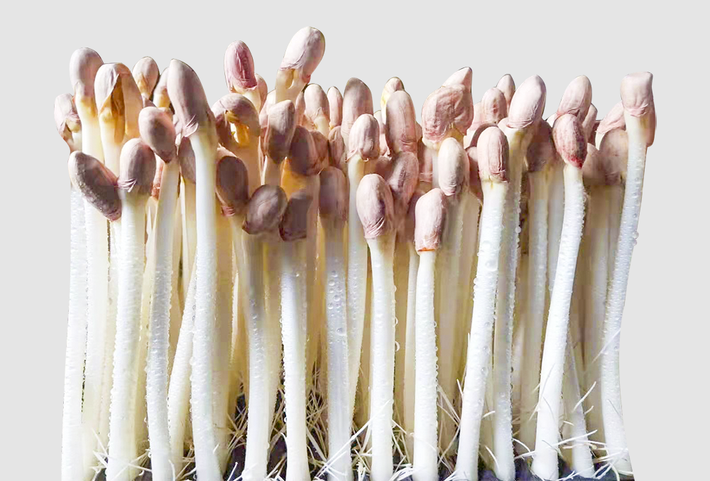 花生芽是花生生芽后产生的一种食疗兼备的食品,也叫长寿芽。它不但能够生吃,而且营养还特别丰富。花生芽的能量,蛋白质和粗脂肪含量居各种蔬菜之首,并富含维生素、钾、钙、铁、锌等矿物质及人体所需的各种氨基酸和微量元素,被誉为“万寿果芽”,花生芽入口浓香,脆嫩,深受消费者喜爱,被广泛应用到凉拌、煎炒、火锅等食用场景中。